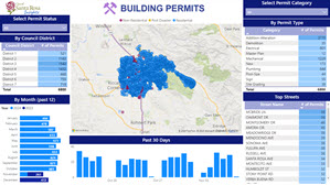 BUILDING PERMITS Explore building permit activity across the city over the past 12 months with our interactive Building Permits Dashboard. This tool provides a detailed map view of permits issued, allowing you to filter by status or focus on specific categories such as Residential or Non-Residential. Enhance your search by selecting permits by Council District, month, or streets with the most activity. For additional details, simply hover your mouse over any point on the map to see a pop-up containing more information.