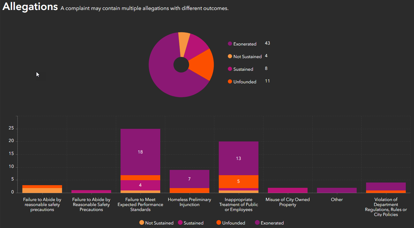 POLICE INTERNAL AFFAIRS - COMPLAINTS Police Department - Internal Affairs Complaints from 2022 to present (year-selector on top-right of the report, multiple views are selected via tabs across the bottom of the report).